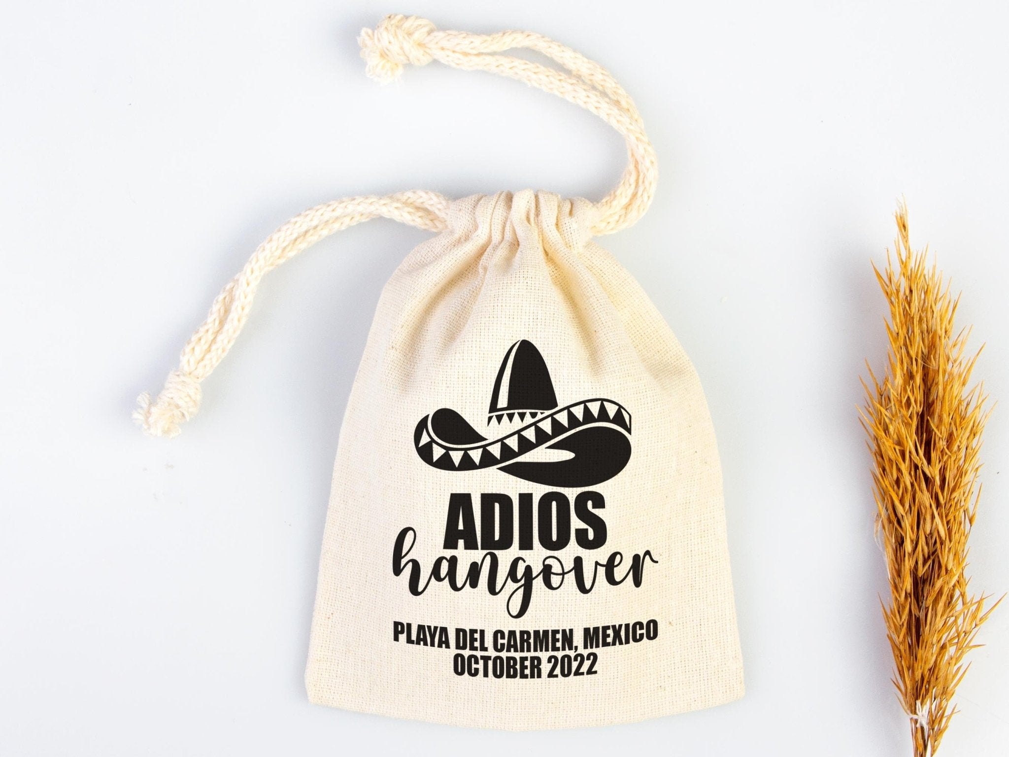 • Adios Hangover Kit Bags - Raw Cotton Fabric - Party Recovery Kit Pouch - Pamusan.com