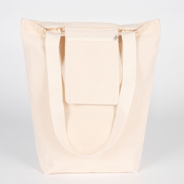 • Beige tote bag on a light gray background