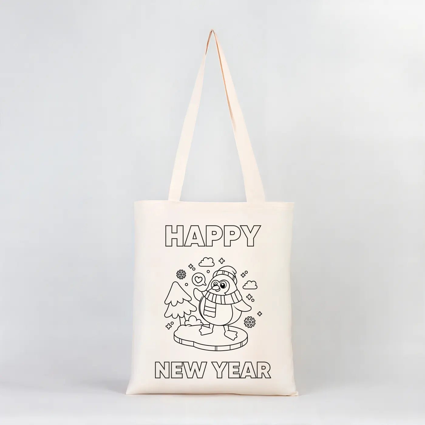 • Coloring Happy New Year Tote Bag – Cute Penguin DIY Cotton Bag for Kids - Pamusan.com