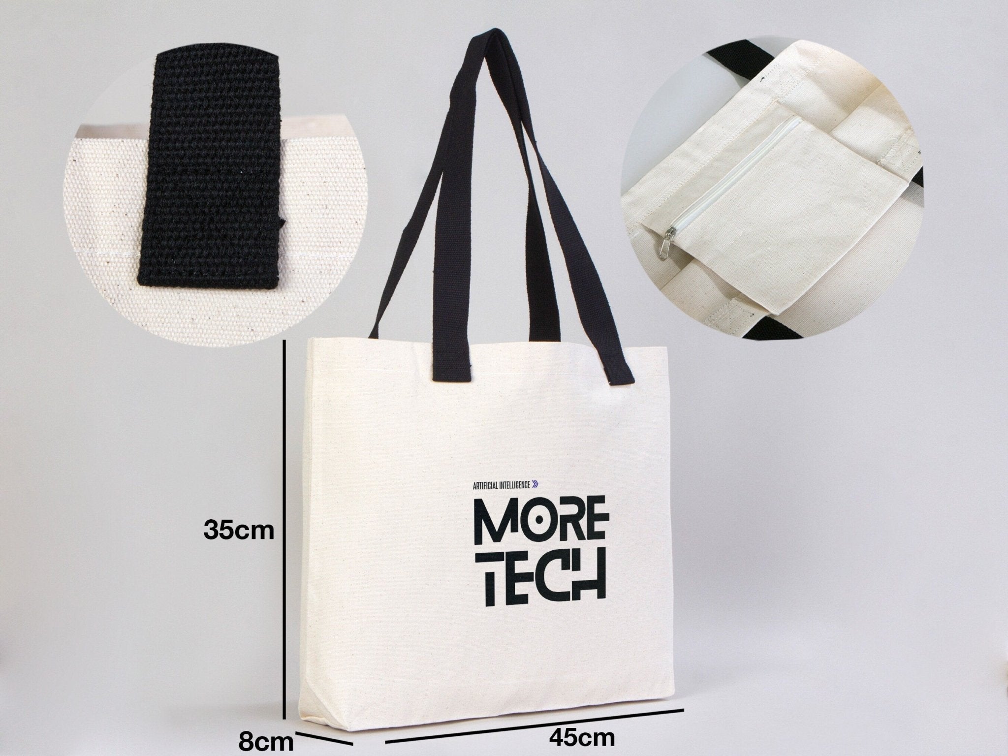 • Handles: 70 cm long black cotton straps (3 cm thick) – comfortable for shoulder use