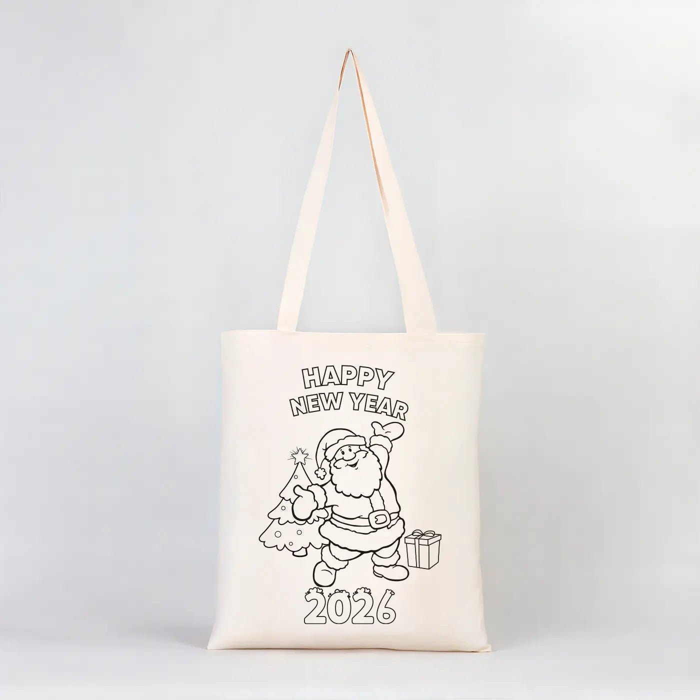 • Happy New Year 2026 Coloring Tote – Santa with Christmas Tree Cotton Bag - Pamusan.com