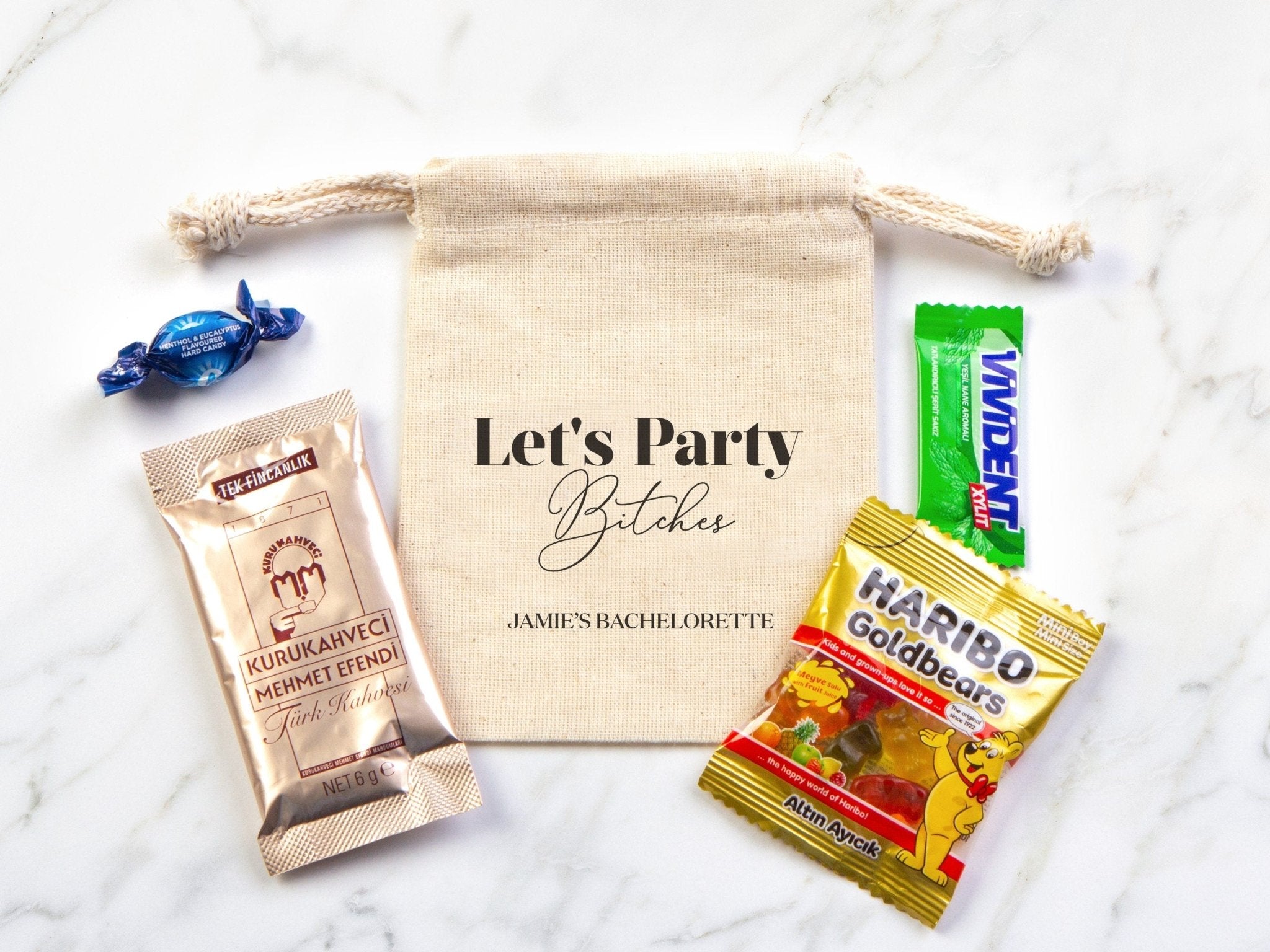 Let’s Party Bitches Hangover Kit Bags – Custom Bachelorette Survival Pouch, Organic Cotton Bags