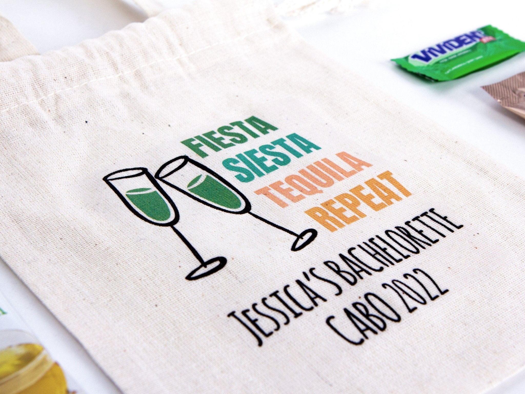 • Fiesta Siesta Tequila Repeat 6"W x 8"H (15.5 cm x 20 cm) - Hangover Kit Pouch - Bachelorette Party - Mexico Survival Kit - Custom Print Bags For Party - Pamusan.com