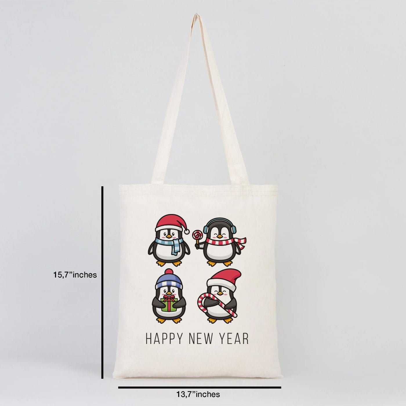 • New Year Tote Bag – Natural Cotton Fabric with Cute Penguin Holiday Design - Pamusan.com