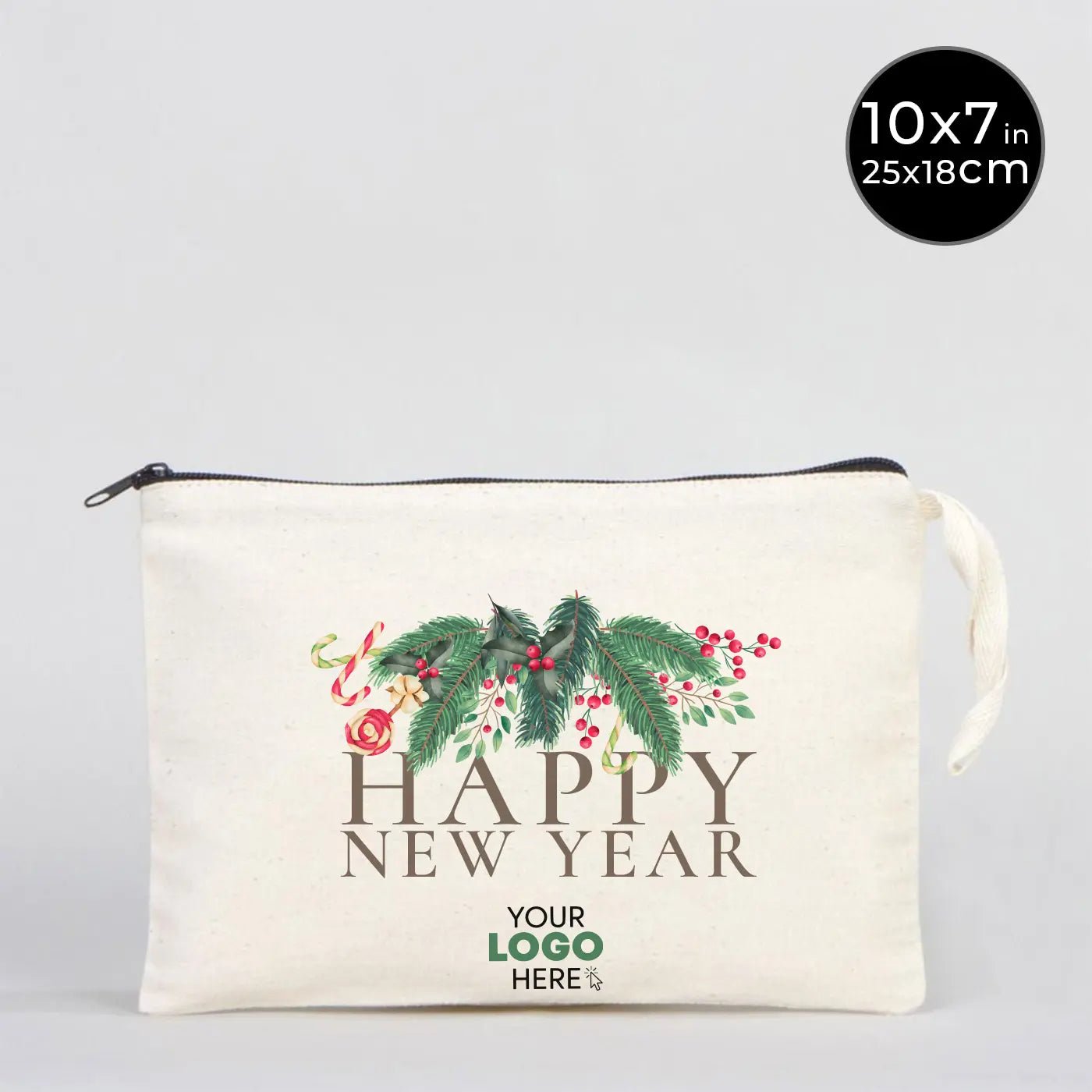 New Year Zipper Pouch 10" × 7" (25 × 18 cm) – Personalized Holiday Gift Cotton Bag