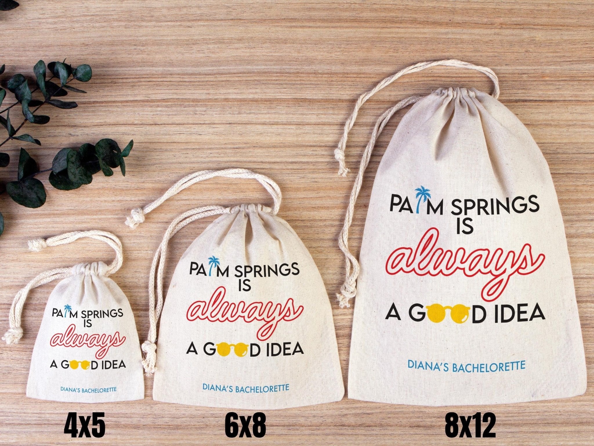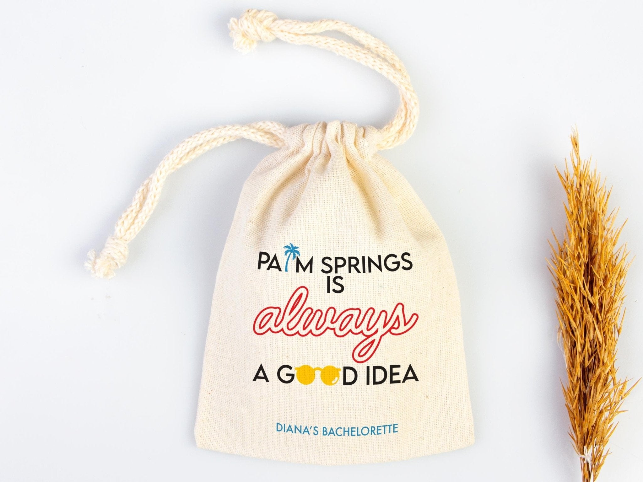 • Palm Springs is Always a Good idea, bachelorette Party Bags, Favor Party Bags, Survival, Custom Name Print, Organic Cotton Drawstring Pouch - Pamusan.com